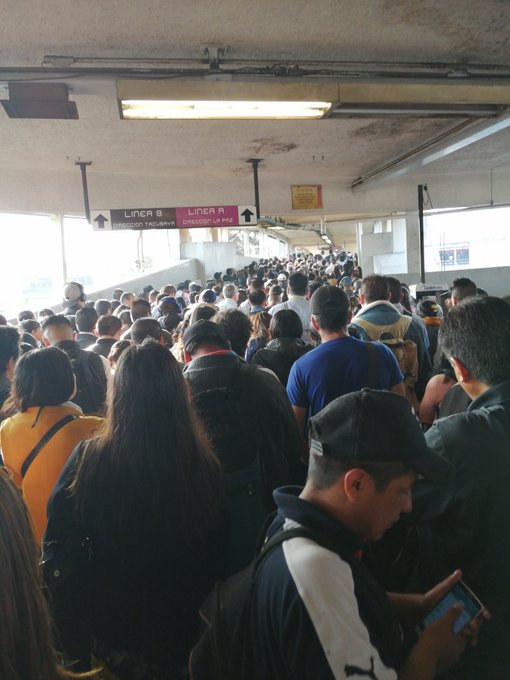 aglutinamiento de usuarios en escaleras y en la plataforma de vías del tren, lo